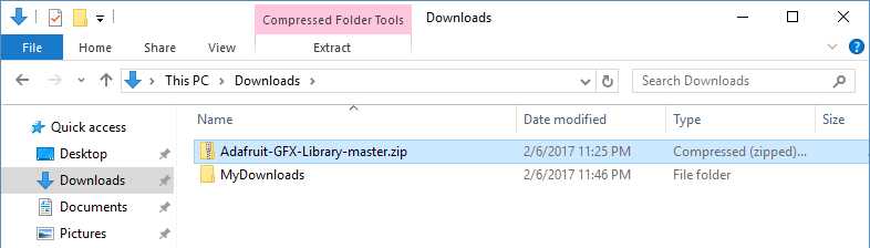 When you want to add a library manually, you need to download it as a ZIP file, expand it and put in the proper directory. The ZIP file contains all you need, including usage examples if the author has provided them. The library manager is designed to install this ZIP file automatically as explained in the former chapter, but there are cases where you may want to perform the installation process manually and put the library in the libraries folder of your sketchbook by yourself.
