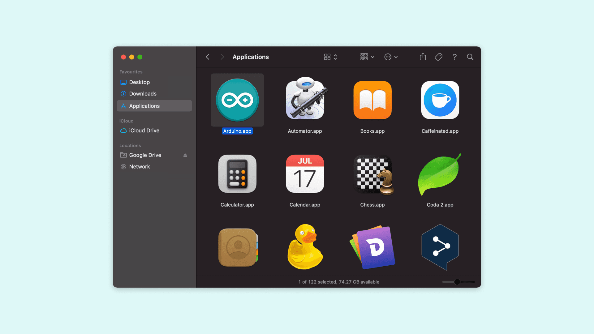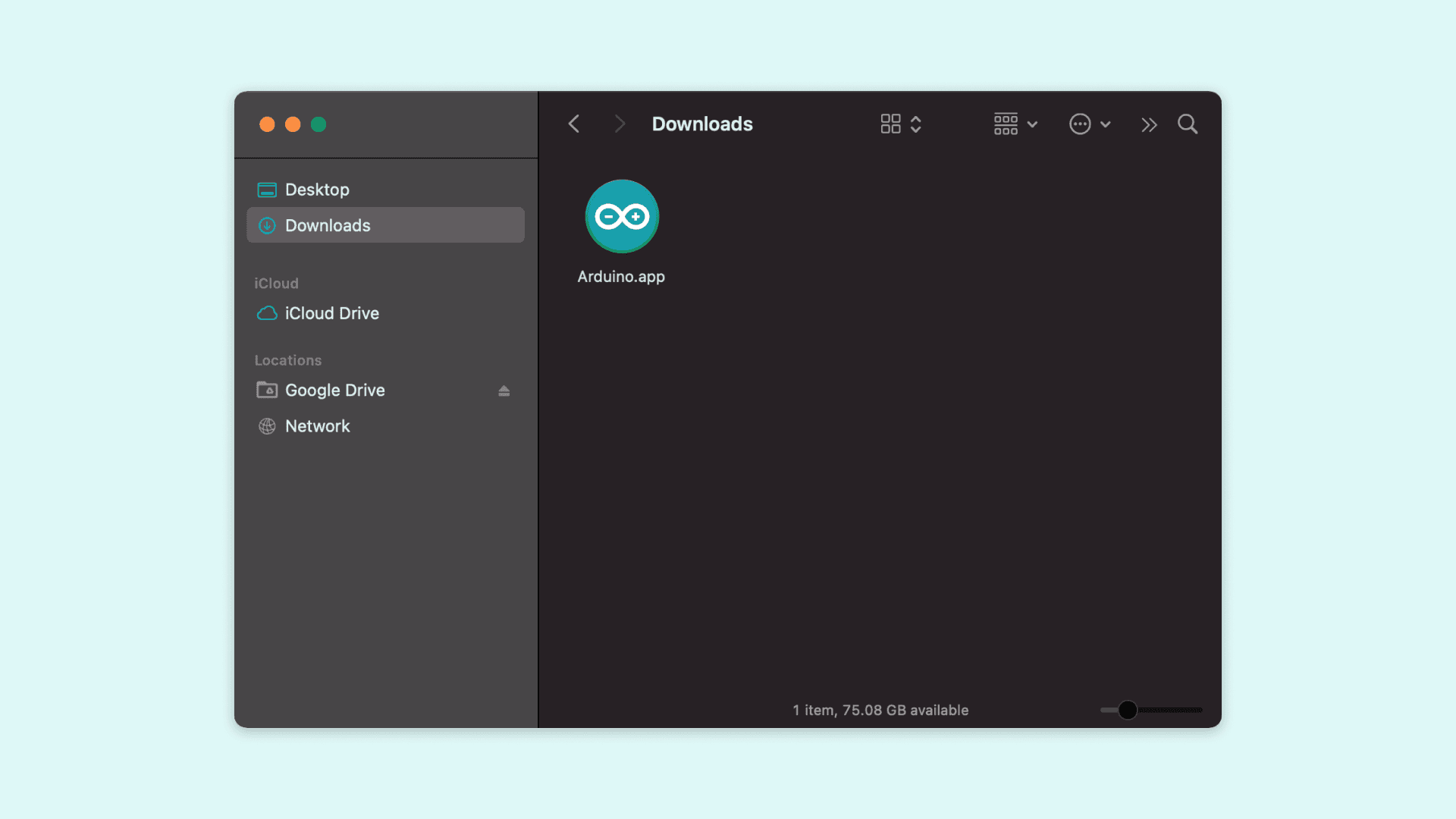 Copy the Arduino application bundle into the Applications folder (or elsewhere on your computer).