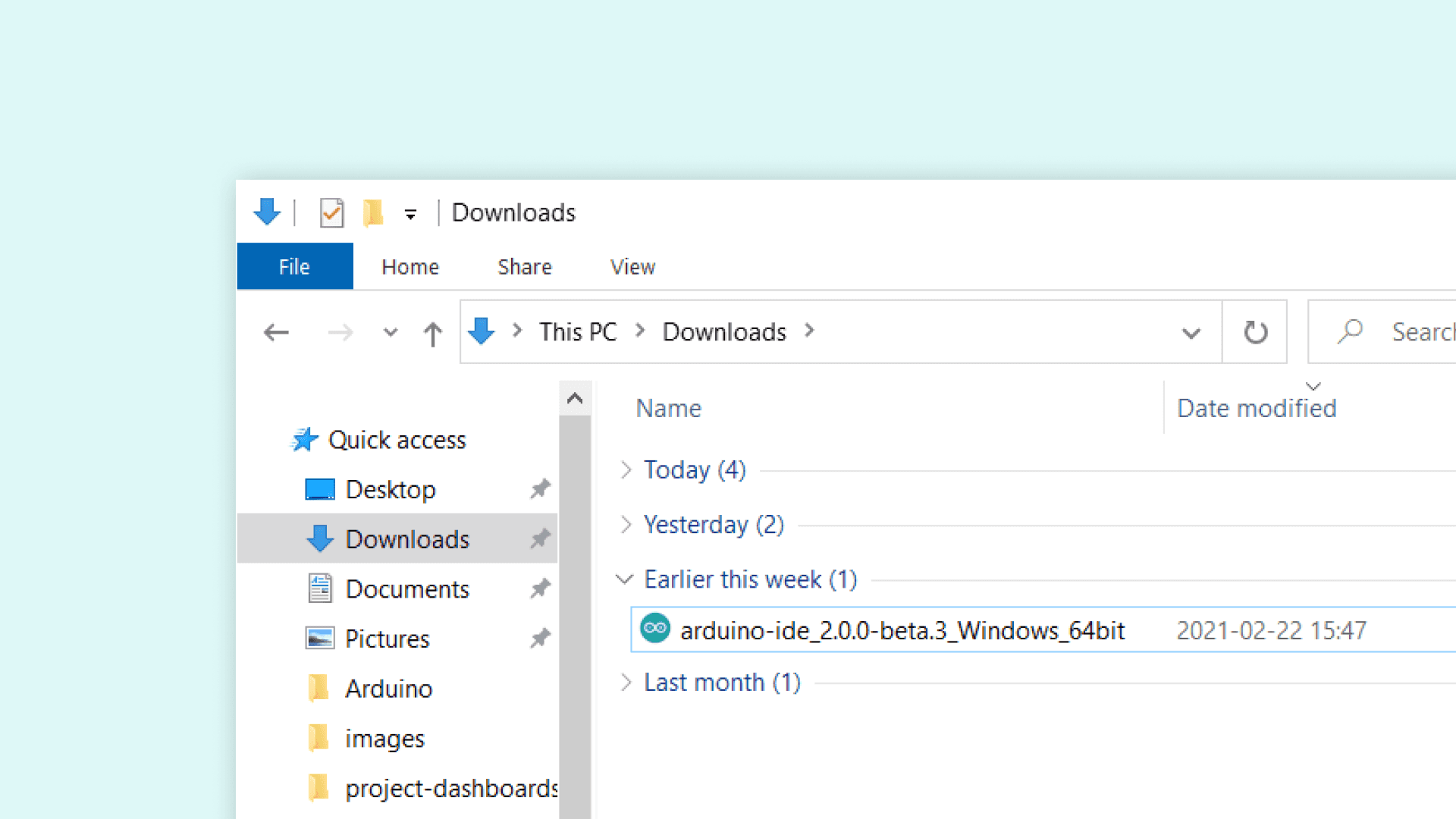 To install the Arduino IDE 2 on a Windows computer, simply run the file downloaded from the software page.
