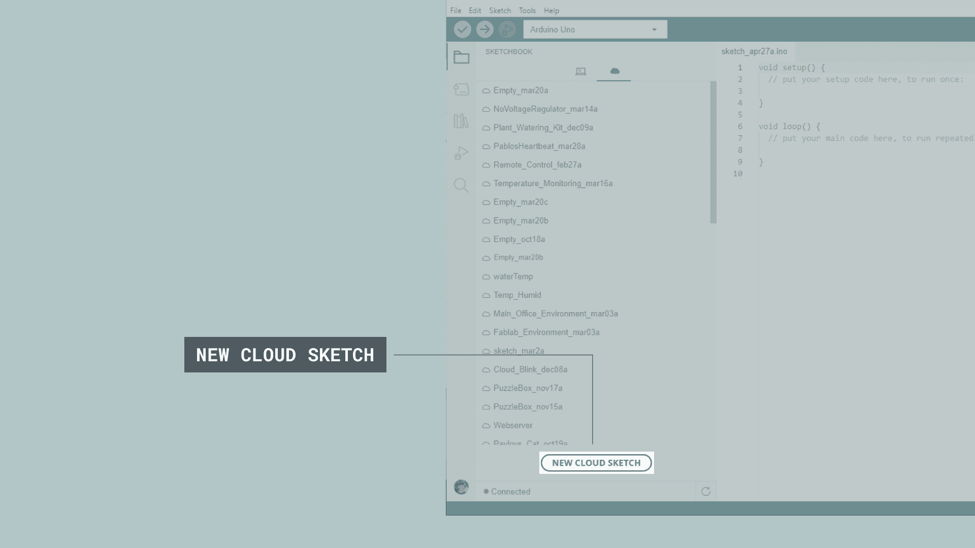 Backup your code: Your sketches are too important to risk losing them! And life is too short to make copies manually. With Remote Sketches you only need one click and they will be saved in the Arduino secure Cloud.