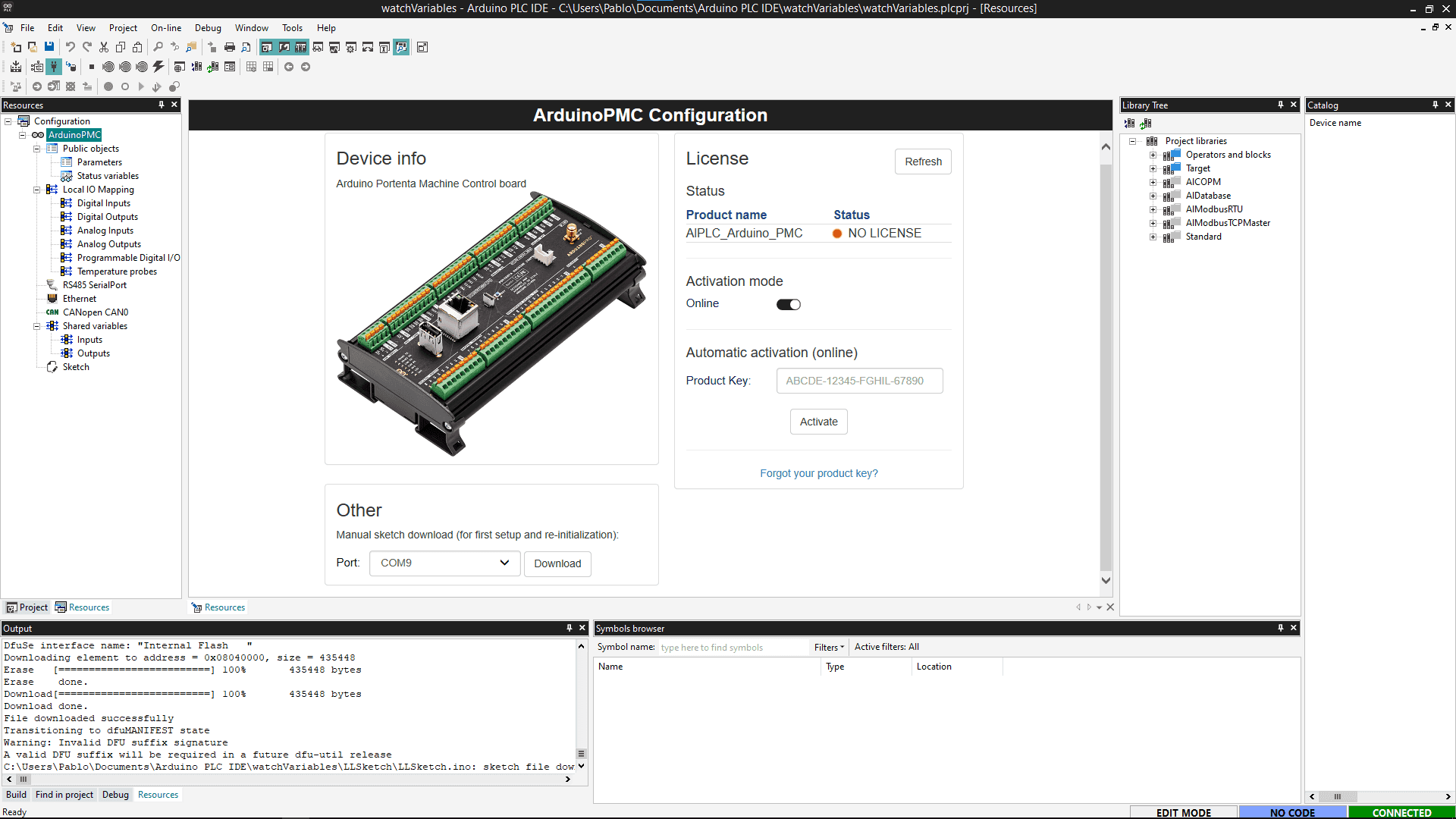 • If you have a Portenta Machine Control, you will need a unique PLC IDE License key for your device. Get your license key here.