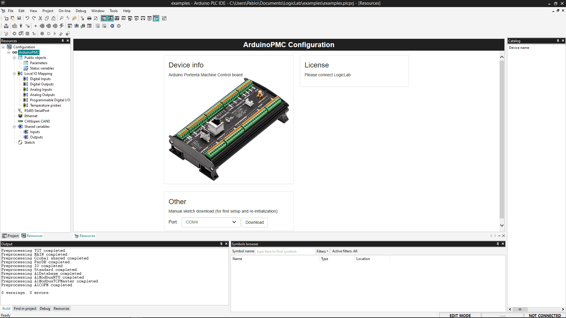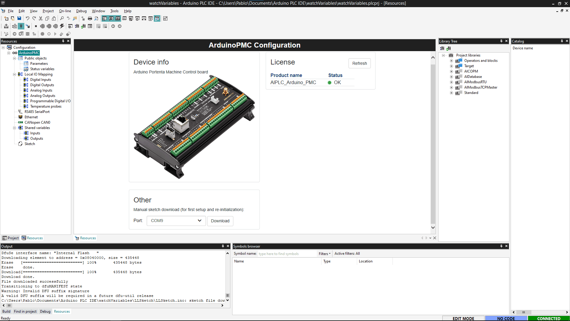 This tutorial will show you how to connect the Portenta Machine Control and Opta™ to the Arduino PLC IDE, learning how to activate the software license and the basic setup to have your board up and running with the Arduino PLC IDE.