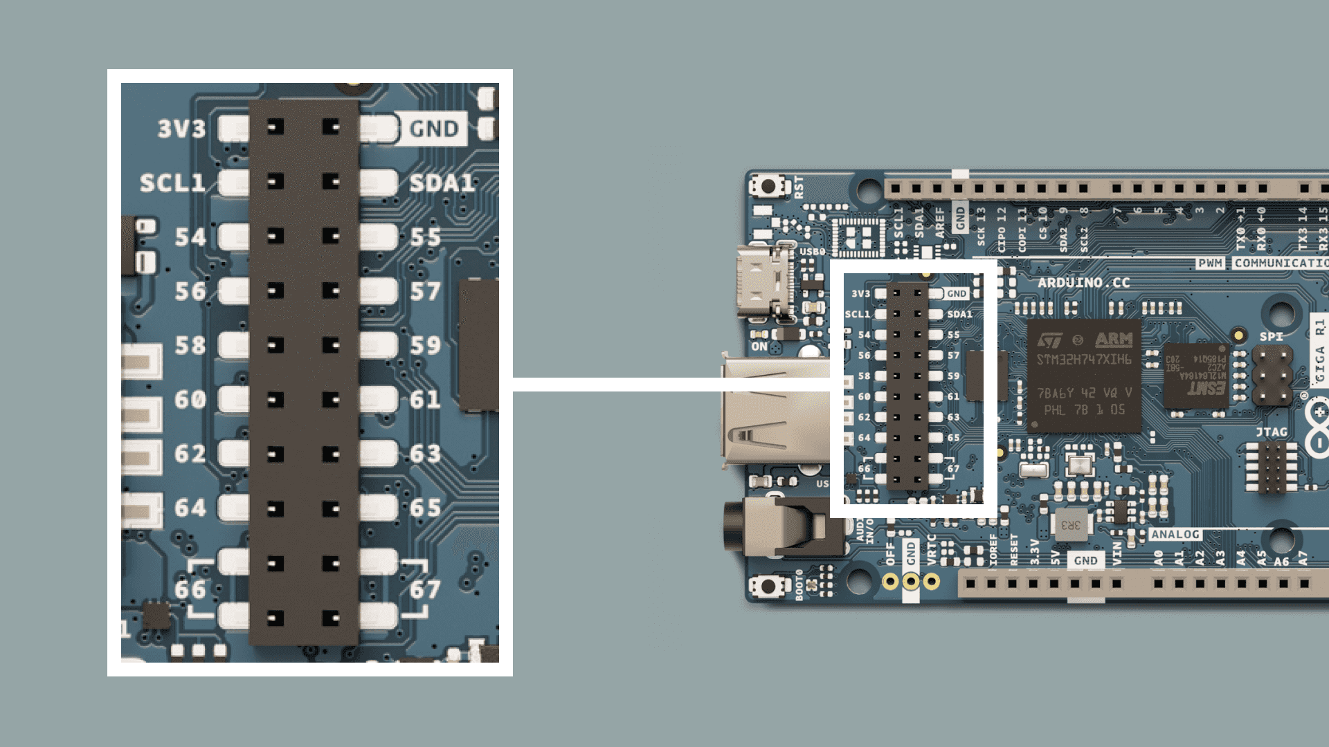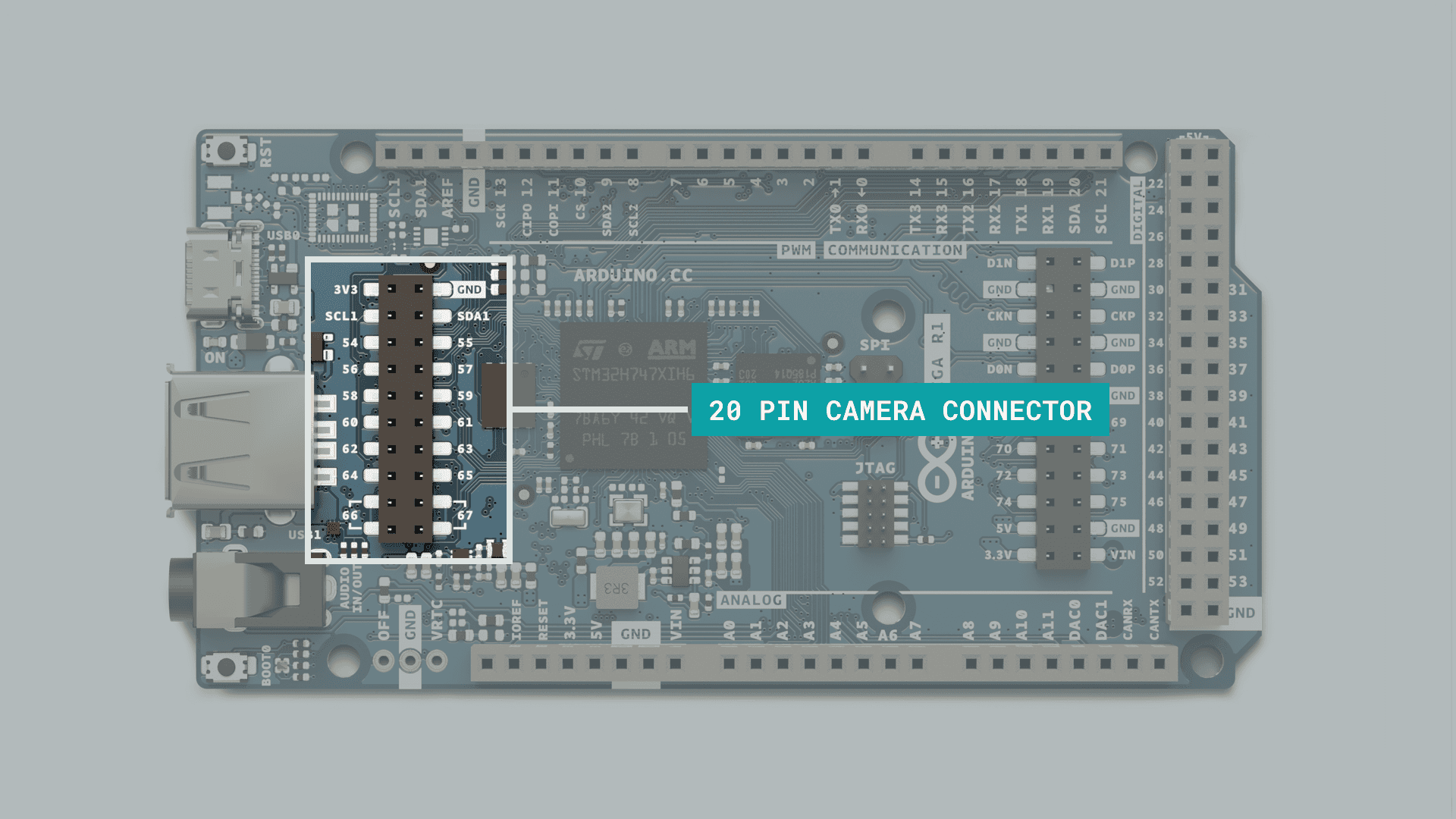 The GIGA R1 has a dedicated camera connector that allows certain camera modules to mount directly on the board. This makes it possible to add machine vision to your GIGA R1 board without much effort at all.