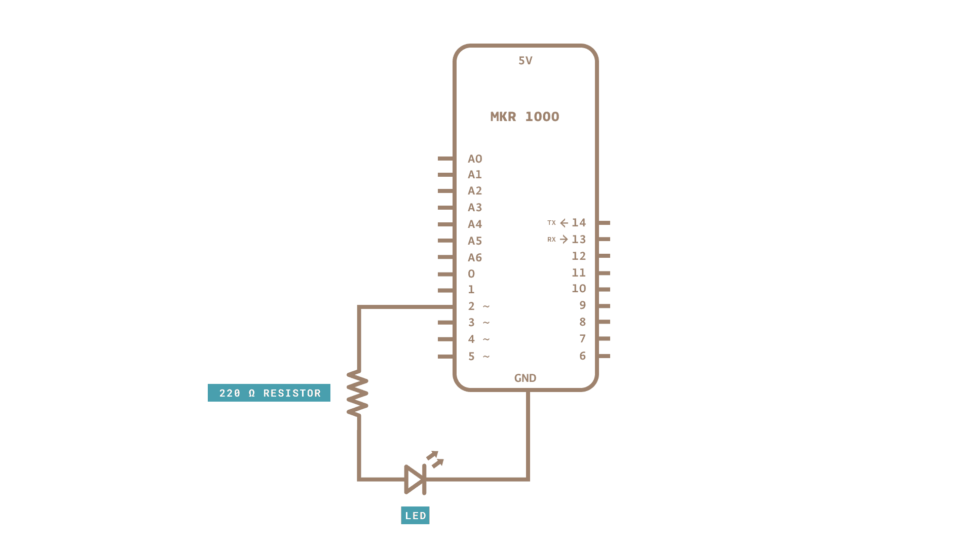 Follow the wiring diagram below to connect the LED to the MKR 1000 WiFi board.