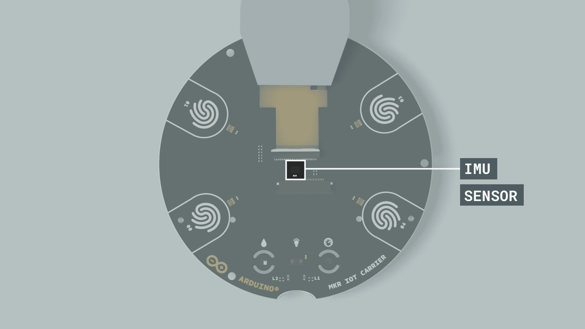 The carrier includes a LSM6DS3 sensor from STM which is an IMU (Inertial Measurement Unit) featuring a 3D digital accelerometer and a 3D digital gyroscope.