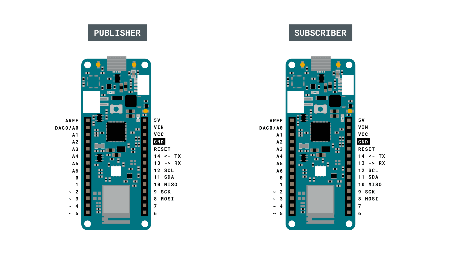 We will now go through the steps required to setup one board as a publisher, and one as a subscriber. The following steps will be needed: