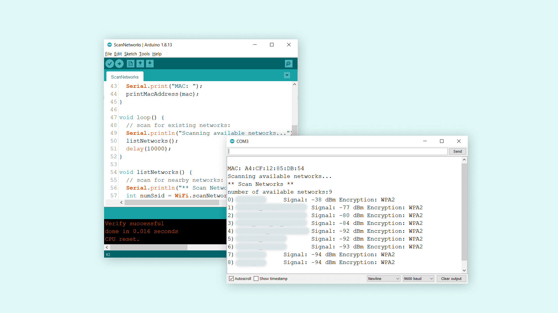 • Print available networks in the Serial Monitor.