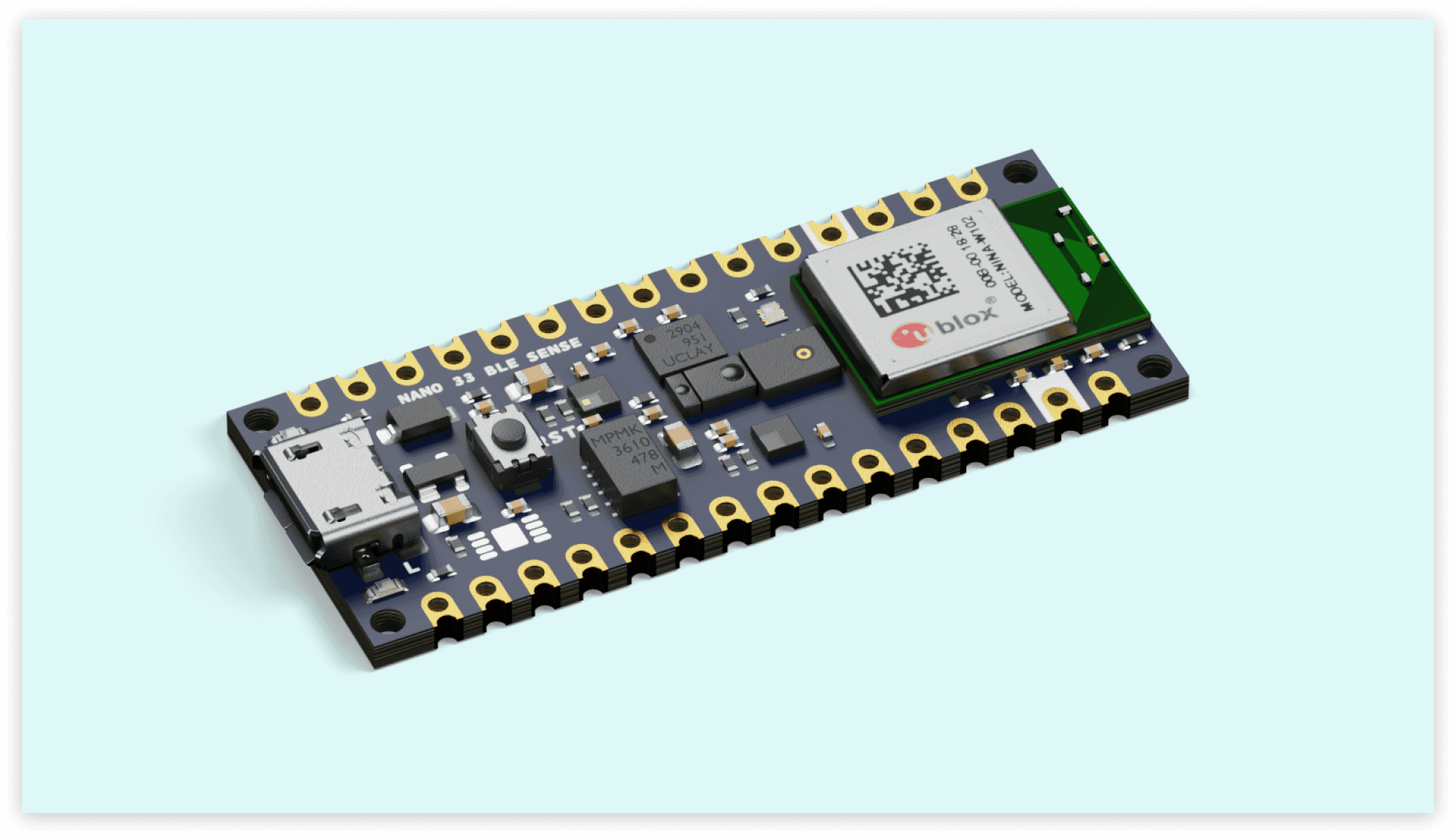 Like other Arduino® products, the Nano 33 BLE Sense features dedicated pins for different protocols.
