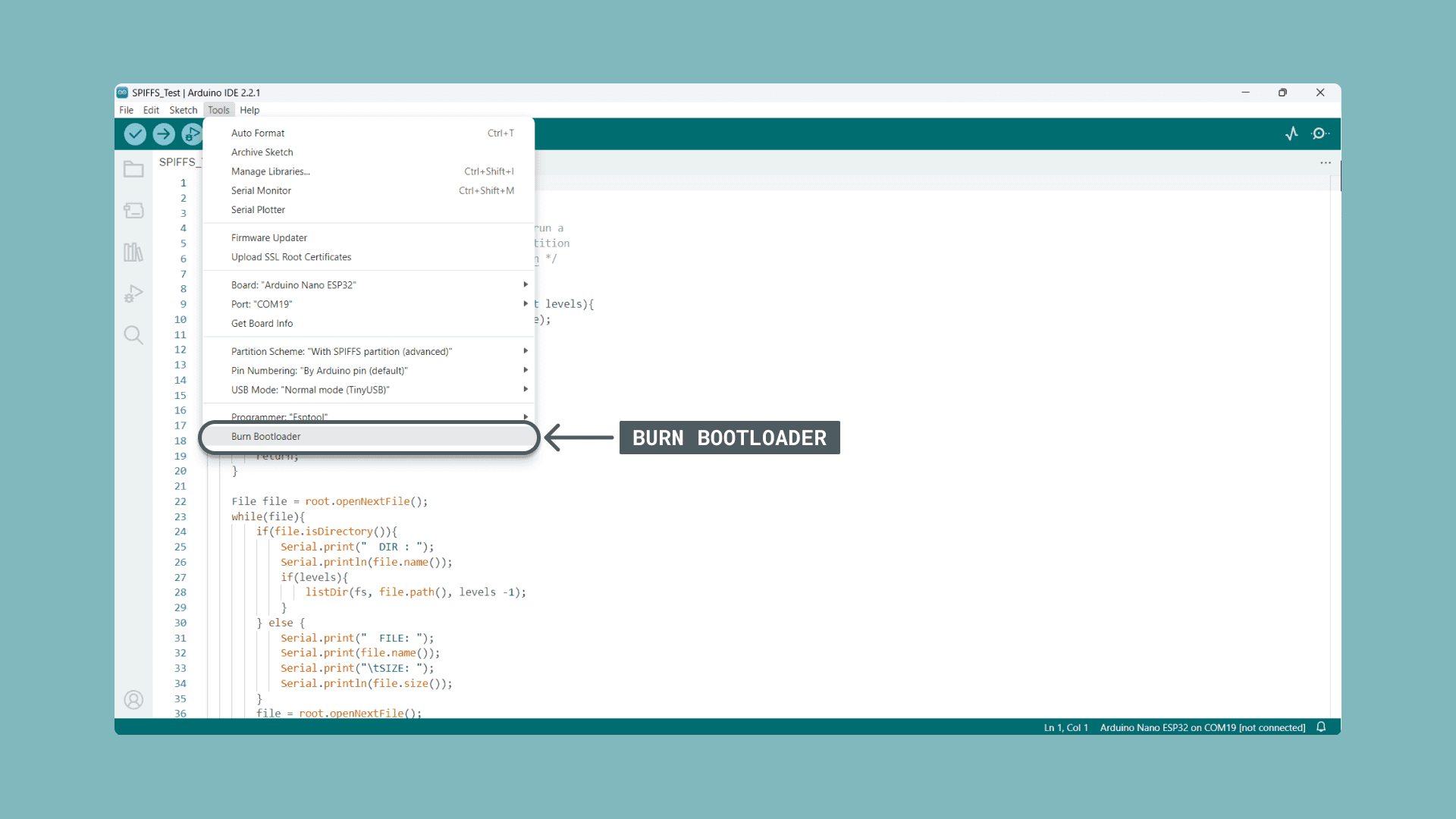 Get started with the SPIFFS partition scheme on the Nano ESP32.